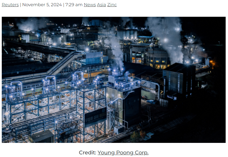 The CEO of Young Poong was arrested in August as part of an investigation of his liability over subsequent safety-related deaths at the Seokpo operation. The company had already cut production at Seokpo since March.