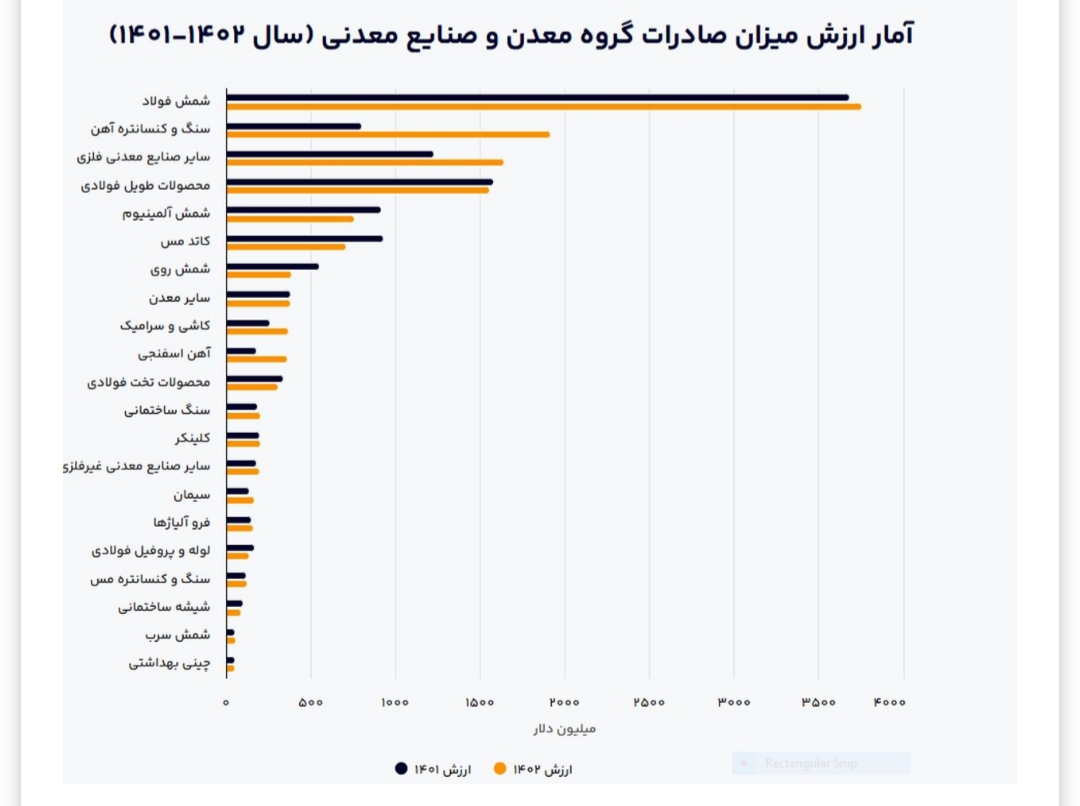 بررسی ارزش میزان صادرات گروه معدن و صنایع معدنی در سالهای ۱۴۰۱ و ۱۴۰۲ نیز نشان می دهد که سهم صادرات بخش معدن روز به روز در حال افزایش است.