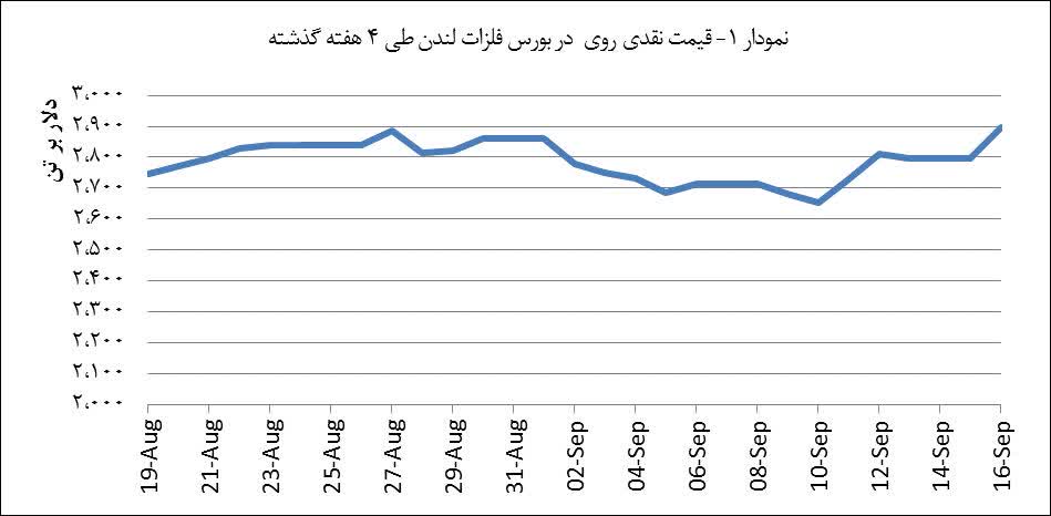 روز دوشنبه ۲۶ شهریور ماه، قیمت روی در بورس فلزات لندن با رشد ۳٫۵ درصدی نسبت به روز معاملاتی قبل از آن، به دو هزار و ۸۹۶ دلار رسید.
