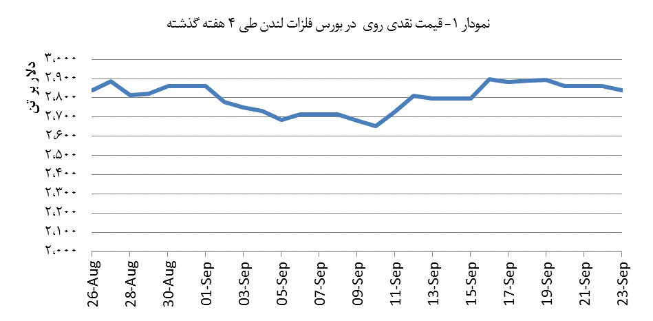 همچنین روز دوشنبه دوم مهر ماه، قیمت روی در «LME» نسبت به هفته قبل با افت ۲ درصدی معادل ۵۷ دلار، از دو هزار و ۸۹۶ دلار به دو هزار و ۸۳۹ دلار به ازای هر تن رسید.