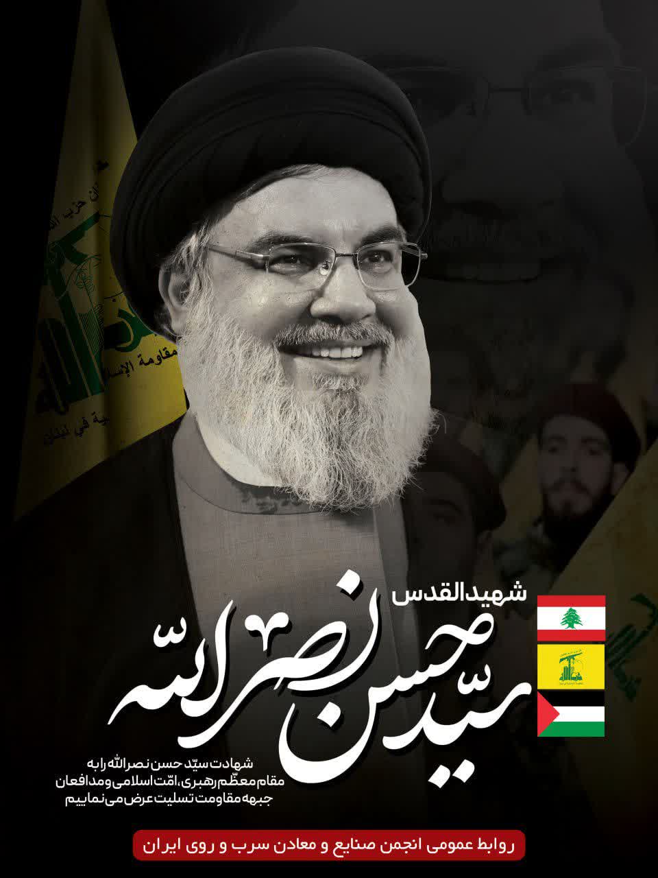 پیام تسلیت انجمن صنایع و معادن سرب و روی ایران به مناسبت شهادت دبیر کل حزب الله لبنان