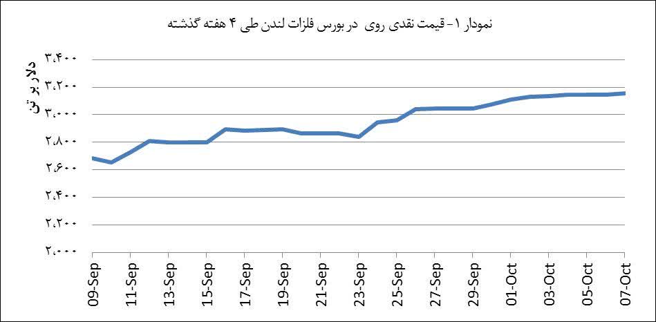 روز دوشنبه ۱۶ مهر ماه، قیمت روی در بورس فلزات لندن با افزایش ۱۰ دلاری نسبت به روز معاملاتی قبل از آن، به سه هزار و ۱۵۴ دلار رسید.