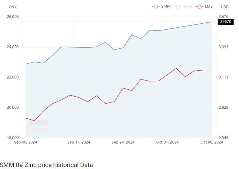 SMM:در بورس فلزات شانگهای قیمت روی تحت تاثیر بازار LME، با ۸۳ دلار افزایش نسبت هفته گذشته، در ۸ اکتبر به ۳,۶۲۹ دلار (شامل ۱۳ درصد مالیات VAT) رسید.منبع/ماهنامهپردازش
