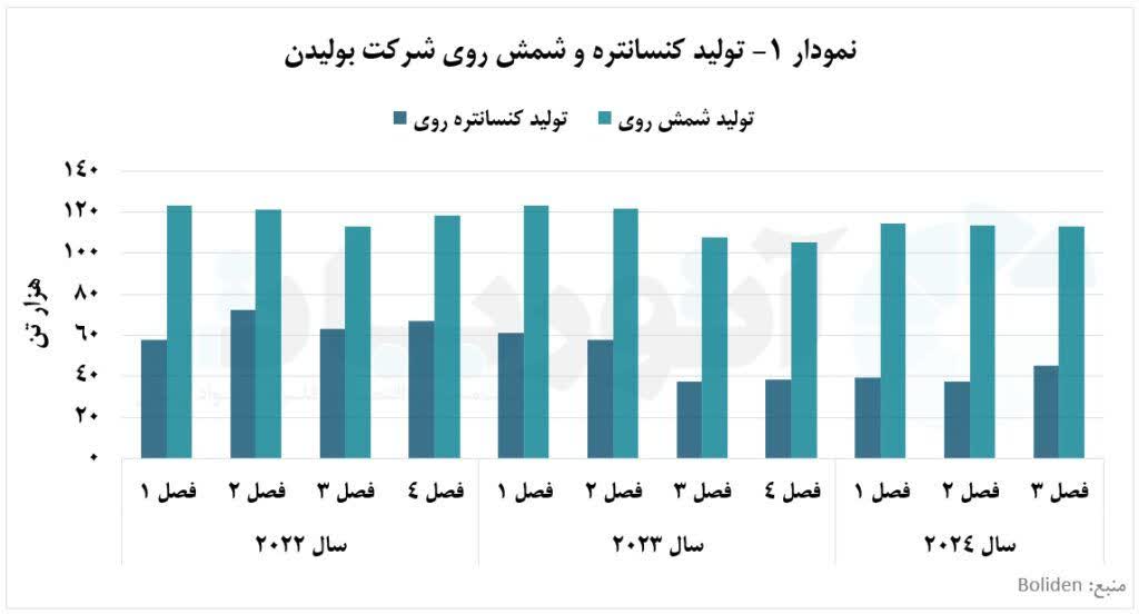 شرکت بولیدن «Boliden» از مهمترین تولیدکنندگان روی در دنیا و اروپا به شمار میآید که در زمینه اکتشاف، استخراج، فرآوری و بازیافت فعالیت دارد. این شرکت در هر فصل به طور میانگین، ۵۲ هزار و ۳۰۰ تن کنسانتره روی و ۱۱۶ هزار تن روی پالایش شده تولید کرده است. شرکت بولیدن «Boliden» از مهمترین تولیدکنندگان روی در دنیا و اروپا به شمار میآید که در زمینه اکتشاف، استخراج، فرآوری و بازیافت فعالیت دارد. این شرکت در هر فصل به طور میانگین، ۵۲ هزار و ۳۰۰ تن کنسانتره روی و ۱۱۶ هزار تن روی پالایش شده تولید کرده است. درآمد عملیاتی شرکت بولیدن در فصل سوم سال ۲۰۲۳ به ۱۹ میلیارد و ۴۰۰ میلیون کرون سوئد رسید؛ در حالی که در فصل سوم سال ۲۰۲۴، حدود ۲۲ میلیارد و ۲۰۰ میلیون کرون سوئد درآمد کسب کرد. گفتنی است که حاشیه سود شرکت بولیدن در فصل سوم سال ۲۰۲۴ حدود ۱۴.۳ درصد بود که نسبت به فصل سوم سال ۲۰۲۳، حدود ۴.۴ واحد درصد افزایش یافت. کاهش درآمد و حاشیه سود ناخالص شرکت به سبب توقف معدن روی تارا بود. به گزارش پایگاه خبری و تحلیلی «فلزاتآنلاین» و به نقل از روابط عمومی شرکت مشاوره اقتصادی آرمان آتورپات، شرکت بولیدن، یک شرکت معدنکاری سوئدی است که در زمینه اکتشاف، استخراج، فرآوری و بازیافت فلزات پایه و گرانبها فعالیت میکند. این شرکت در سال ۱۹۳۱ تاسیس شد و هماکنون یکی از تولیدکنندگان برجسته فلزات مس، روی، سرب، نقره و طلا در اروپا به شمار میرود. محل فعالیت اصلی بولیدن در کشور سوئد و حیطه فعالیت آن شامل معدنکاری و تولید شمش میشود. گفتنی است که شرکت بولیدن از مهمترین تولیدکنندگان روی در دنیا بوده است. معدن آیتیک «Aitik»، بزرگترین معدن مس روباز سوئد است که در شمال این کشور قرار دارد. سنگ معدن آیتیک حاوی عناصر مس، طلا و نقره است که از معادن شرکت بولیدن محسوب میشود. معدن تارا «Tara»، دیگر دارایی معدنی شرکت بولیدن، بزرگترین معدن روی قاره اروپا و یکی از بزرگترین معادن در دنیا است که در کشور ایرلند، قرار دارد. در سال ۲۰۰۴، شرکت بولیدن این معدن را خریداری کرد. معدن گارپنبرگ «Garpenberg» نیز در شهر هدمورای سوئد، از قدیمیترین معادن این کشور به شمار میرود که حاوی سنگهای معدنی روی، سرب، نقره، مس و طلا است. با سرمایهگذاری شرکت بولیدن در سال ۲۰۱۴، ظرفیت تولید معدن مذکور از یک میلیون و ۵۰۰ هزار تن به دو میلیون و ۵۰۰ هزار تن رسید. معدن کویستا «Kevitsa»، از معادن شرکت بولیدن واقع در شمال فنلاند است که کنسانتره نیکل، مس، پلاتین، پالادیوم و طلا تولید میکند. از واحدهای ذوب این شرکت میتوان برگسو «Bergsöe»، رونسکار «Rönnskär»، کوکولا «Kokkola»، اودا «Odda» و هارجاوالتا «Harjavalta» را نام برد. واحد ذوب برگسو «Bergsöe»، تنها کارخانه بازیافت سرب در منطقه شمال اروپا و یکی از بزرگترین بازیافتکنندگان باتریهای سرب-اسید در قاره اروپاست. این شرکت به طور میانگین، حدود چهار میلیون باتری را در هر سال بازیافت میکند. مجتمع ذوب رونسکار «Rönnskär» شرکت بولیدن، با مصرف کنسانتره مس و سرب از معادن این شرکت، محصولاتی مانند کاتد مس، سرب، اسید سولفوریک، نقره و طلا تولید میکند. ظرفیت بازیافت روی این واحد ۲۹ هزار تن در سال اعلام شد. از محصولات واحد ذوب کوکولای «Kokkola» شرکت بولیدن میتوان به روی با ظرفیت ۲۹۴ هزار تن و اسید سولفوریک به عنوان محصول جانبی اشاره کرد. در غرب نروژ، واحد ذوب اودا «Odda» برای تولید محصولاتی مانند روی و سولفوریک اسید تاسیس شد. ظرفیت اسمی تولید روی این واحد در سال ۱۶۴ هزار تن گزارش شد. در نهایت، واحد ذوب هارجاوالتا «Harjavalta» شرکت بولیدن در جنوب غربی فنلاند، به تولید محصولاتی مانند مس، نیکل، طلا، نقره و اسید سولفوریک مشغول است. تولید کنسانتره و شمش روی شرکت بولیدن روند تولید کنسانتره روی شرکت بولیدن در طول سالیان متمادی، با نرخ رشد مرکب منفی ۲.۵ درصد نزولی بوده است. علت این امر را میتوان حرکت شرکت بولیدن به سمت استفاده از منابع بازیافتی در کنار استخراج سنگ معدن روی عنوان کرد. گفتنی است که شرکت بو