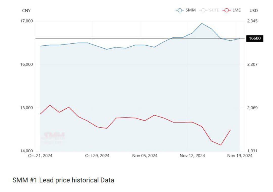 در بورس فلزات لندن، قیمت سرب روند کاهشی داشت و با 31 دلار کاهش نسبت به هفته گذشته در 18 نوامبر به 1,991 دلار رسید. موجودی سرب انبار LME در این هفته به صورت چشمگیر افزایش یافت. بازار منتظر داده های اقتصادی بیشتر است.
